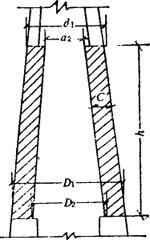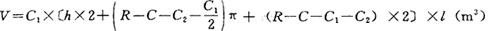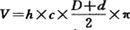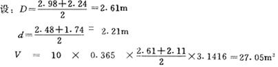 式中 V-体积(m3); h-段高; D-下口中心线直径 c-壁高; d-上口中心线