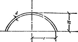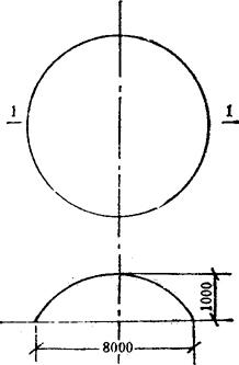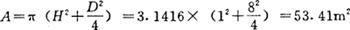 图2-54 V=3.1416×4×5×0.08 =62.83×0.08=5.03m3 〔计算例2〕 水塔槽底为半球形已知矢高(H)为1米,直径(D)8米,求槽底抹灰面积(见图2-55)