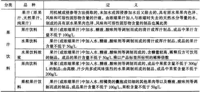 (一)果蔬汁饮料分类