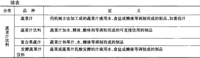 表2-1-82 果蔬汁饮料的分类