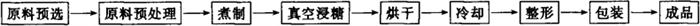 图1-6-14 果脯类糖渍制品加工工艺流程图 (1)原料预选 通常以鲜果为原料,因为在加工过程中需要较长时间煮制、腌渍拌匀等,果品易破碎。为保持产品外形完整,减少破损损失,需选择肉质致密、坚实的果实作原料。 对于北方水果,如苹果、桃、杏、枣等原料,要求选择成熟度在7~8成。南方水果,如金橘、菠萝,要求选择成熟度在8~9成。而蔬菜类原料,如胡萝卜、冬瓜及藕则没有严格要求,成熟即可。 (2)原料预处理 果蔬原料种类较多,各种原料形状、质地不同,预处理工艺也不尽相同。如苹果要清洗,去皮,分辨,去核,放在0.2%~0.3%的亚硫酸盐溶液中浸泡;枣要分级,清洗,去核,划丝,再熏硫或放在亚硫酸盐溶液中浸泡。蔬菜则需拣选,清洗,去皮,切块(条、片)及硬化处理,浸硫即可。原料预处理所用机械大致有清洗机、去皮机、切片机、捅核机及浸泡槽等。目前国内生产厂家预处理工序完全采用机械化生产的不多,主要以手工和半机械化生产方式为主。 (3)煮制 果实在未加热前,保持原有活性,由于细胞膜的选择性渗透作用,以及细胞内胶体物质特性,保持了一定的膨胀压,当其与糖液一同加热时,由于细胞膜内外存在着渗透压的差异,使细胞内的水分向外扩散引起细胞缺水收缩。由于细胞膜对内外通过的物质具有一定的选择性,糖液中的糖分子扩散较慢。在煮制过程中,果实组织细胞受到高温作用,胶体物质发生变化,细胞膜选择性的控制能力被破坏。这样,水分子和糖分子交换就没有障碍了。因而,扩散运动的速率大大加快。糖液中的糖分子与原料组织中的水、空气分子置换得较为充分。即浸糖效果好,外形饱满、透明。煮制时间不易过长,一般因原料不同而有差异,多数在2~10min内,糖液浓度一般不高于30度(折光计浓度)。 煮制设备多采用夹层锅或浸渍罐。用浸渍罐加热煮制时,可不用真空装置。 (4)真空浸渍 经过煮制后原料放在真空浸渍罐中,然后将调配好的糖液抽入罐中,开启真空装置,进行真空浸渍。抽真空时间一般为5~30min,真空度保持在80~90kPa,最高不得超过95kPa。质地较软且疏松的原料,抽真空时间一般在5~10min,真空度在85kPa,这样容易保证原料外形整齐,破损率较低。浸糖的浓度最高不超过75度(折光计)。此道工序采用真空浸糖罐。 (5)烘干 将浸渍好的原料沥糖后,放在托盘上进行烘烤。烘干室的温度及烘烤时间随原料品种不同而有差异。如苹果烘烤温度在65~75℃,要逐步升温,达到规定的温度后,保温时间为18~36h。杏脯一般要烘烤2次,第一次烘制温度为60~65℃,时间为8~12h;第二次定型烘干温度为70~85℃,时间为1~2h。烘烤工序原则是块大、肉厚、完整的原料,烘制温度要适当低一点,持续时间要长,排湿要充分。切忌升温过快,温度过高。否则,易造成原料外部水分损失过快,表面硬化,并出现收缩起皱,而严重抑制其内部水分的溢出,反而大大延长烘烤时间,造成产品不易保存、霉烂。 实践证明,采用烘房烘制果脯比烘干机效果好得多。因而,目前各厂家广泛采用烘房烘烤果脯。 (6)冷却,整形,包装 烘烤后的果脯要经过强制冷却,防止吸潮,然后在一定时间内进行回软处理,时间为8~12h。 回软后进行整形处理,整形是将果脯按原有的物料形状进行修边,压平,使之外形美观。 包装形式分纸箱及小袋包装两种,一般纸箱包装先将果脯放入大塑料袋中,然后再装入纸箱中。小袋一般采用复合袋包装。包装好的成品入库保存,成品库要控制在25℃以下,相对湿度在60%以下,并做好防尘、防霉、防虫及防鼠工作。 2.2 蜜饯类糖渍制品加工工艺 蜜饯类糖渍制品,一般采用一次煮成法和冷浸法。生产过程较果脯生产简单,其主要工序集中在原料前处理阶段,所需设备也较果脯少得多。主要设备有打孔机、去核机、分辨机等。 蜜饯类糖渍制品加工工艺流程如图1-6-15所示。