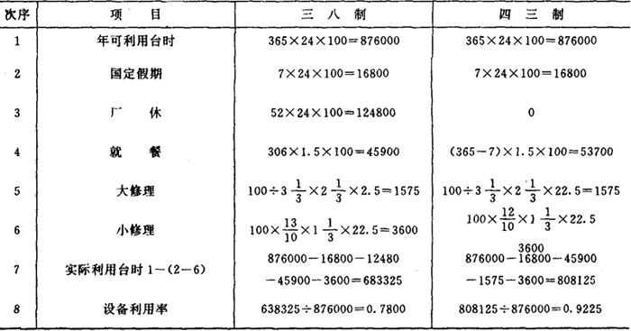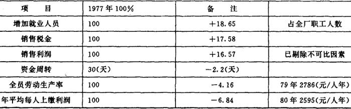 该厂从1979年9月起实行四班三运转(简称“四三制”)。他们对1980年度生产经济效果进行分析,并与1979年比较,认为在市场需要、原料供应充沛、能源保证、措施得当的条件下,实行“四三制”是现阶段老企业挖潜增产的一条较好途径。