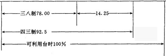 四三制比三八制设备利用率提高0.9236-0.7811=0.1425=14.25%,用图表示如下(见图):