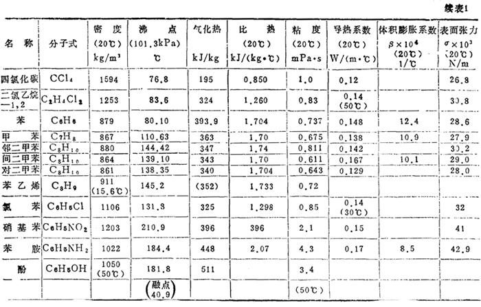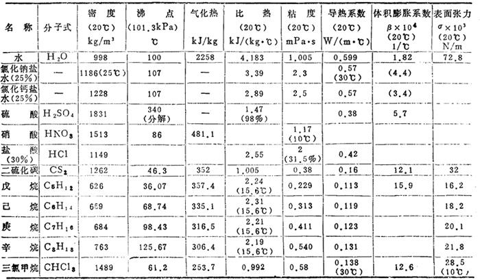某些液体的重要物理性质