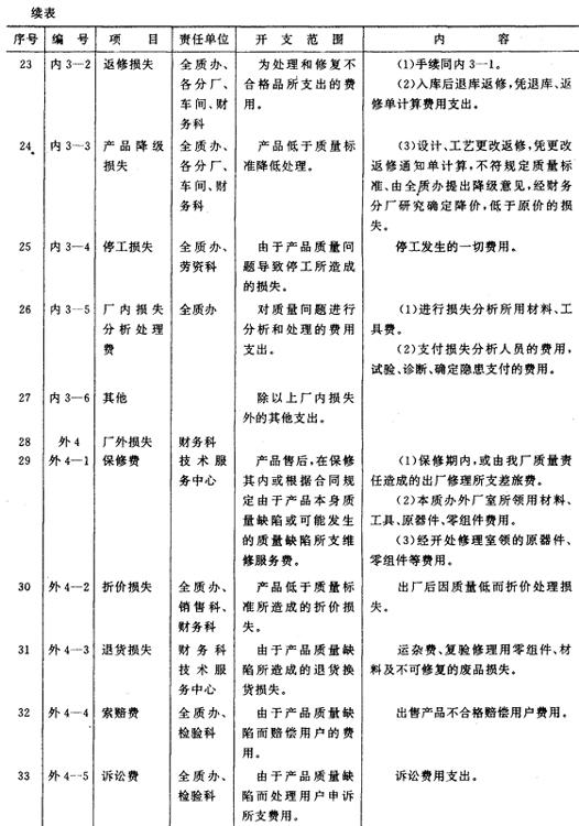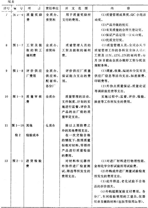 十二、为了明确责任,加强管理,在质量成本核算中实行质量责任会计,作为全面质量管理的一项重要内容。“责任质量成本”是责任会计的一项主要内容。在各要素费用分配到“生产成本”、“产品质量费用”帐户之前,可设置“可控费用”、“不可控费用”帐户,进行责任成本的核算。 附表19《质量成本核算程序》 附表19 质量成本核算程序
