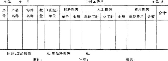 附表(三)《废品损失汇总计算表》。 附表3 废品损失汇总计算表