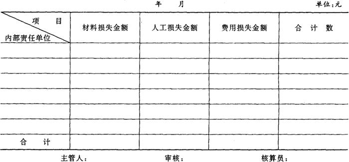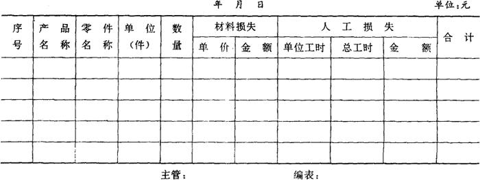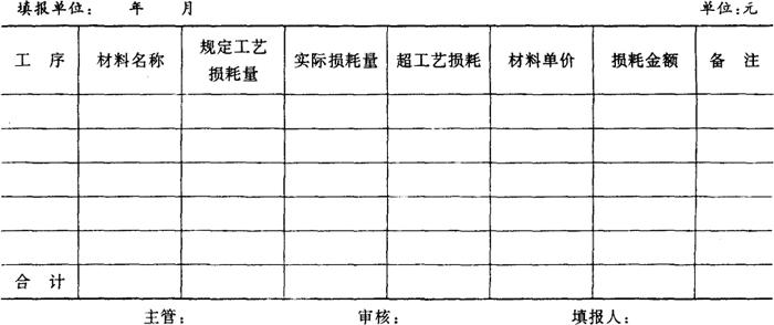 分厂各车间、工段、班组发生的,确因材料质量原因而产生的超定额消耗的材料质量损失,区别材料质量不合要求的退料与生产退料,应填报超耗损失报告单,明确质量责任。 附表9《材料筛选损失报告单》 附表9 材料筛选损失报告单