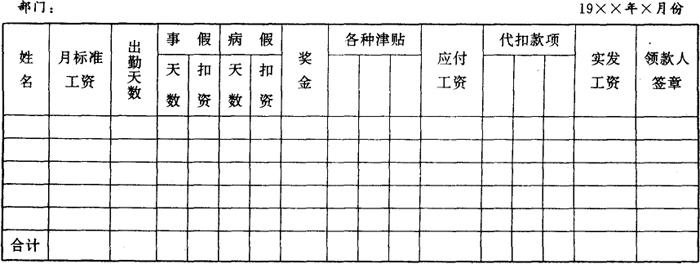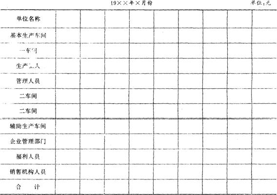 4.工资结算支付明细表、工资结算支付汇总表和工资汇总分配表。 《工资结算支付明细表》是根据有关原始记录计算职工工资的一种表格。根据《工资结算支付明细表》,编制《工资结算支付汇总表》,以总括反映整个企业和各个单位的各种工资发放情况,这两种表格可在现行工资结算计算机程序中单独分出有关质量成本管理部门的工资明细和汇总。然后对工资总额及提取的职工福利基金按经济用途进行分配,可通过编制《工资汇总分配表》进行。 工资结算支付明细表