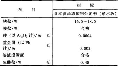 鉴别方法 本品呈柠檬酸盐和铁盐反应。 1.柠檬酸盐反应 参见柠檬酸鉴别方法。 2.铁盐反应 本品水溶液加入10%新配制的亚铁氰化钾溶液,产生蓝色沉淀,再加稀盐酸(1+3)或稀硝酸(1+9),沉淀不溶。 毒理学依据 1.GRAS FDA-21CFR 184.1298。 2.ADI 无需规定(FAO/WHO,1994)。 使用 铁强化剂。 1.使用注意事项 可用于强化调制奶粉、面粉和饼干等。因其呈褐色,故不宜用于不宜着色的食品。 2.使用范围及使用量 我国《食品营养强化剂使用卫生标准》(GB 14880-94)规定:可用于谷物及其制品,用量为150~290mg/kg;用于饮料,60~120mg/kg;乳制品、婴幼儿配方食品,360~600mg/kg;食盐、夹心糖,3600~7200mg/kg。 |