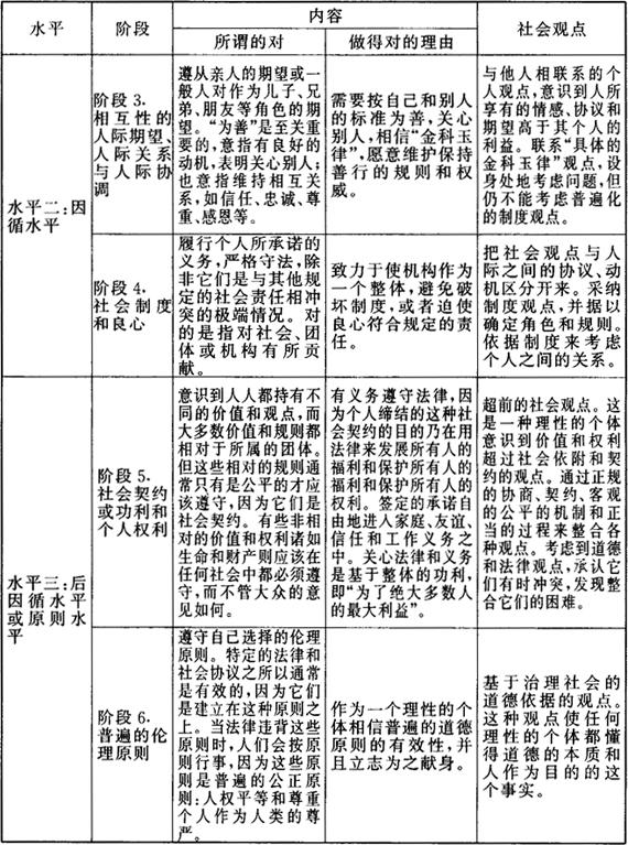 | 释义 | 柯尔伯格 道德发展的心理学 1984(1) 劳伦斯·柯尔伯格(Lawrence Kohlberg,1927~1987)生于美国纽约,曾就读于麻省安道威学院的私立高级学校,1949年获芝加哥大学学士学位,1958年获该校哲学博士学位,并获得博士后研究资金,继续其研究工作。1959至1961年在耶鲁大学任教,1962至1968年在芝加哥大学任教,1968年起受聘为哈佛大学教授,直到逝世。1974年在哈佛大学建立道德发展与道德教育研究中心,形成了以他为首的庞大研究集体。柯尔伯格沿着皮亚杰《儿童的道德判断》的研究路线,对个体的道德认知发展进行了大规模的追踪研究和跨文化研究,先后长达30多年,取得了丰硕的成果。他多年来完成的研究报告、论文近200种,他生前精选出其中最能代表其思想的文章,辑成3卷《道德发展文集》。它们分别是:《道德发展的哲学》(1981)和《道德发展的心理学》(1984)、《道德发展与道德教育》(1986)。这3本着作集中反映了柯尔伯格道德认知发展理论的最主要方面。在道德发展领域,科尔伯格默默地、勤奋地树立了一块科学的丰碑。正如英国的《道德教育杂志》对他的评价:“他对道德发展和学校道德教育实践所作出的贡献是无与伦比的,在他数十年所致力的这些领域中,他超过了他同时代的所有人。” 《道德发展的心理学》是柯尔伯格系列《道德发展文集》的第2卷,其副标题是“道德阶段的本质与证实”。其人选的文章代表柯尔伯格在不同时期所进行的理论探讨和实证研究。全书共分3个部分:第1部分是“道德发展的理论”,第2部分是“道德阶段:目前的表述和对批评者的答复”,第3部分是“实验方法与结果”。该书被认为是道德认知发展领域中的最丰富和最深刻的着作。下面根据该书的英文版原着,摘其主要内容加以介绍。 一、道德认知发展的基本观点 (一)儿童道德发展的实质。 柯尔伯格继承皮亚杰的观点,把儿童的道德发展看作是整个认知发展的一部分,儿童的道德成熟过程就是道德认识的发展过程。他指出:“我的道德研究工作是从皮亚杰……认为儿童是一个哲学家的看法出发的。”与皮亚杰的看法相似,柯尔伯格将儿童看作是道德哲学家,认为儿童有自己的关于价值观问题的思考方式,能自发形成他们的道德观念,这些道德观念又形成有组织的思维方式。他说:“我认为发展中的儿童是一位道德哲学家,能建构关于诸如公平的普遍范畴或问题的意义。”他还说:“道德在本质上表达了对每一种文化都是有效的一套判断和决策的理性原则,它体现了人类利益和公正原则……道德原则代表了儿童自己的道德经验的理性结构……儿童也可以是有理性的,即能独立思考,能考虑公正原则及他人的利益。” 按照柯尔柏格的看法,道德认知是对是非、善恶行为准则及其执行意义的认识,并集中在道德判断上。他认为道德判断是人类道德的最重要成份,是道德情感、道德意志和道德行为的前提。因此,他所研究的道德认知发展主要集中于道德判断的发展。道德判断是一个人根据道德原则对什么是正确的或错误的行为进行的判断,即道德评价。道德判断不同于其他判断,它具有3个特征:首先,道德判断是一种价值判断,而不是事实判断。前者是解决道德领域中的应该不应该的问题,后者是解决认识领域中的是不是问题。因此,对道德判断和推理的研究要区别于皮亚杰对认识判断和推理的研究。其次,道德判断是一种社会判断,即对人的判断,而不是对物的判断。前者是对社会领域中的人与人之间或群体之间各种冲突性的权利和义务的选择和判断,后者是对物理关系的判断和推理。再次,道德判断是一种约定的或规范的判断,即对应该、权利和义务的判断,而不是对喜欢、爱好的价值判断。道德判断的约定性是引导、指向、驱动人们采取一定的道德行动。在柯尔伯格看来,儿童的道德成熟首先是其道德判断上的成熟,然后是与道德判断相一致的道德行为上的成熟。 (二)道德判断的结构与内容。 柯尔伯格认为,道德判断可以从其结构和内容两个维度加以界定,不同发展水平和阶段的道德判断,既有具体的内容,又有特定的结构。道德判断的内容是指思考了什么,包括有关的道德事实,供参照的道德观念及相应的看法。具体指个体在对道德两难故事反应中所用的问题、规范和要素。道德判断的结构是指怎样思考问题或思考的方式,是对具体道德内容思维加工的方法和过程。评判人们对道德问题的看法,不能着眼于道德判断的内容,而必须考虑道德判断的思维结构才能了解其看法的真正价值和意义。正如柯尔伯格自己所说的:“依照皮亚杰的做法,我们对道德判断的内容及其结构或形式加以区分。就结构而言,我们是指思维的一般组织原则或模式,而不是特定的道德信念或观念。也就是说,我们认为概念不是彼此独立习得或使用的,而是按一般结构特征联系在一起的。我们强调思维的形式而非内容,这是因为形式展示了个体发展的规则性和普遍性。”道德判断的结构与内容是一个判断的两个方面,两者彼此包含、相互限定。结构规定了内容,而内容体现了结构。一方面,儿童的道德判断的结构使儿童形成某种道德观念或价值观,并据此作为对有关道德问题进行判断和推理要遵循的方向。这样的道德判断定向从整体上调控了儿童对种种具体道德问题的认知,儿童表现出总是以一定的方式去认