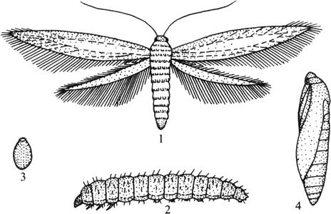 图5-2 柿蒂虫 1.成虫 2.幼虫 3.卵 4.蛹 成虫:雌蛾体色浅,黄白色。翅展78~93毫米,前翅有不明显的黑色波状横纹4条,外缘有7~8个褐色斑点;中室外缘横脉有“<”形横纹,中部有一黑点。腹末膨大,密被淡黄色毛,末端有由暗棕色和黄棕色毛所组成的毛垫。雄蛾体瘦小,棕褐色,翅展41~54毫米,花纹与雌蛾相同。 卵:球形,灰黄色,孵化前呈紫褐色,上被黄褐色绒毛。 幼虫:体色多变,有黑、黄、灰三色。胴部各体节有6个毛瘤,前后排成纵列,瘤上生毛,以气门下线一列的瘤毛最长,背上2列毛瘤色泽鲜艳,前5对为蓝色,后7对为红色。1龄幼虫刚毛中间具有呈泡状扩大的毛,称为“风帆”,幼虫能借此“风帆”随风扩散。 蛹:纺锤形,暗褐色,被有锈黄色毛丛。 雌成虫:体长1.5毫米,椭圆形,紫红色。体背有圆锥状刺毛,腹部边缘有白色弯曲的细毛状蜡丝。老熟后,虫体包在毛毡状蜡囊中,蜡囊白色,椭圆形,似大米粒,长3毫米,宽2毫米。 卵:长0.3~0.4毫米,椭圆形,表面有白色蜡粉和蜡丝,成堆产在卵囊中。 若虫:长0.5毫米,椭圆形,扁平,紫红色。具短刺状蜡突,形似刺猬。 成虫:体长25毫米,翅展75毫米左右,雄蛾较雌蛾体小。头部黄色,复眼及触角黑褐色。前胸背面黄色,胸背有4个黑斑。前后翅均为白色,上面分布许多黑褐色斑点,外缘部分较密,前翅顶角几乎成黑色。腹部金黄色,背面每节两侧各有1个灰褐色斑纹。腹部各节均有不规则的黑色横纹;足基节黑色,其余各节为灰白色,中足胫节有距1对,后足有距2对。 卵:椭圆形,初产时翠绿色,孵化前变成黑褐色。 幼虫:初孵化幼虫体长2毫米左右,漆黑色,胸部稍膨大。老熟幼虫体长55毫米,头部黄褐色,单眼黑色。胴部第3、4节特别膨大。在膨大的部分两侧有椭圆形黑色眼形纹1对。背线宽大成带状。 蛹:体长25毫米,暗赤褐色,胸背前方两侧各有一耳状突起;其间为一横隆起线所连接,隆起线与胸背中央隆起线相交成“十”字形。 【病原】: Cercospora kakiEll.Et Ev.,属于半知菌亚门真菌。 Mycosphaerella nawae Hiura et Ikata,属于子囊菌亚门。 Colletotrichum gloeosporioides Penz.,属于半知菌亚门真菌。 Fusicladium kaki Hori et Yoshsno,属于半知菌亚门真菌。 Phyllactinia kakicola Sowada,属于子囊菌亚门真菌。 Pestalozzia diospyri Syd.,属于半知菌亚门真菌。 【发病规律】: 角斑病菌以菌丝体在病蒂及病叶中越冬。第二年环境条件适宜时,产生大量分生孢子,通过风雨传播,进行初次侵染。病蒂能残存在树上2~3年,病菌在病蒂内可以存活3年以上。一般6~7月在越冬病蒂上即可产生大量新的分生孢子,经风雨传播,从气孔侵入,潜育期为25~38天,8月初开始发病。发病严重时,9月份出现大量落叶、落果。当年病斑上产生的分生孢子,在适宜条件下可进行再侵染。5~8月降雨早、雨日多、雨量大,有利于分生孢子的产生和侵入,发病早而严重,9月下旬至10月初,叶片大多落光,果多变软,不能加工。降雨晚、雨日少、雨量少的年份发病晚而轻,落叶期延迟。幼叶不易受侵染,老叶易受侵染;顶部叶不易受侵染而下部叶易受侵染。渠道边栽培的树或树冠下部及内膛的叶片,一般发病早而严重;而路旁或旱地栽培的树,则发病较轻。病蒂多的树发病早而严重;靠近君迁子树的柿树发病也较严重,君迁子苗木最易感病,能造成严重落叶。 柿圆斑病菌以未成熟的子囊果在病叶上越冬,北方一般于第二年6月中旬至7月上旬子囊果成熟,形成子囊孢子。子囊孢子借风力传播,由气孔侵入,经过60~100天的潜育期,一般到8月下旬至9月上旬开始表现症状,9月下旬病斑数量大增,10月上中旬开始大量落叶。一般来说,上一年病叶多,当年6~8月雨水多,发病严重。弱树上病叶变红脱落快而多,壮树上病叶不易变红,脱落慢而少。凡土地条件不良或施肥不足导致树势衰弱,发病往往比较严重。 病菌主要以菌丝体在枝梢病斑中越冬,也可在病果、叶痕和冬芽中越冬,至年初夏产生分生孢子,进行初次侵染。分生孢子借风雨和昆虫传播,侵害新梢及幼果。病菌可以从伤口侵入,也可直接侵入。由伤口侵入时,潜育期3~6天;直接侵入时,潜育期6~10天。在北方果区,一般年份枝梢在6月上旬开始发病,雨季为发病盛期,后期秋梢可继续发病。果实多自6月下旬开始发病,7月中下旬即可见到病果脱落,直至采收期,果实可不断受害。雨后气温升高,出现发病高峰。夏季多雨年份,该病为害严重。 主要以菌丝体在枝梢及病斑中越冬,有时带病柿蒂也可成为初浸染来源。 病菌以闭囊壳在落叶上越冬。 病菌以菌丝体和分生孢子在病斑内越冬。 【发生规律】: 每年发生2代,以老熟幼虫在树皮裂缝或根颈附近土里结茧越冬。越冬幼虫于4月中、下旬化蛹,5月上旬成虫开始羽化,盛期在5月中旬。5月下旬第一代幼虫开始为害幼果,老熟后,一部分在果内,另一部分爬至树皮裂缝处结茧化蛹。第一代成虫在7月上旬至7月下旬羽化,成虫产卵在果梗与果蒂缝隙处,产卵量达10~40粒。卵期5~7天。幼虫孵化后由柿蒂基部蛀入果内。幼虫在果柄处吐丝缠绕,故被害果不易脱落。虫粪堆积在蛀孔处,易于发现。幼虫有转果习性,可为害5个果,老熟后在最后被害果内结茧化蛹。第二代幼虫自8月上旬开始为害,每个幼虫多蛀食1~2个果,被害果变黄、变红、变软,8月中下旬开始大批脱落。8月下旬以后,幼虫陆续老熟越冬。 每年发生1代,以卵块在树皮上、梯田堰缝、石缝中越冬。次年4~5月间孵化,初孵幼虫有群聚性,遇惊吐丝下
