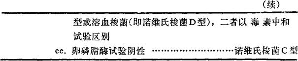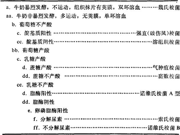 说明:肉毒梭菌有不同的型,即同型的生化反应亦有差异,如《梭菌特性表》最后两行所示,倒数第二行的是蛋白质分解型,其中包括B型、F型,倒数第一行的B型、F型是糖酵解型。由于此因,未将肉毒梭菌列于上表,其鉴定,主要依靠毒素中和试验。 |