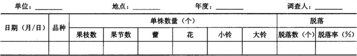 2.4 棉花生育状况调查 在每种系统调查田内,各选择10株棉花,从现蕾开始至9月20日结束,每10天调查1次。记载蕾、花、铃数量及脱落数量。结果记入表5-48。 表5-48 棉花生育状况调查表