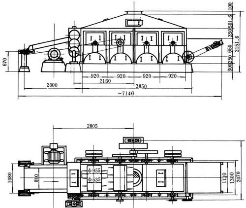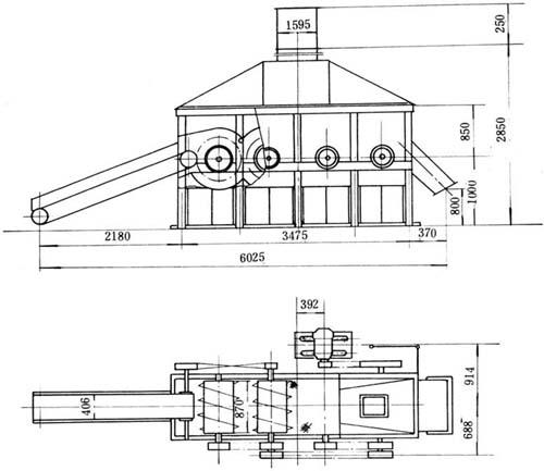 联合机主要包括进料胶带输送机,切断破碎机,中间胶带运输机,棉秆筛碎末出料螺旋和除尘等设备装置。其主要技术特征见表6-2-32。
