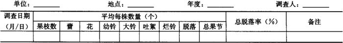 2.5 棉花生育状况调查 2.5.1 调查时间 每月于5日、15日、25日各调查1次。从现蕾开始至吐絮结束。 2.5.2 调查内容 在三种类型田和观测圃中,各固定10株,调查果枝数、现蕾数、开花数、幼铃数、大铃数、吐絮铃数、脱落数等。结果记入表5-34。 表5-34 棉花生育状况调查表