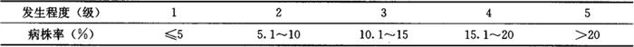 3 发生程度分级标准 河南省主要以发病盛期的平均病株率来划分: