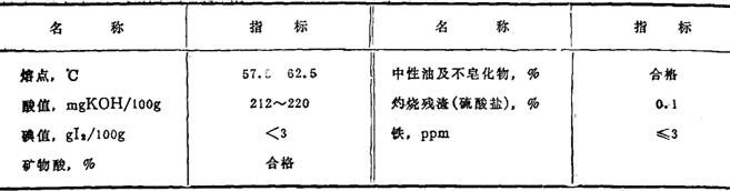 | 释义 | 棕榈酸 化学名 十六烷酸(十六酸) 结构式 CH3(CH2)14COOH 分子量256.26 性能 常温时为白色固体,熔点62.9℃,具有饱和脂肪酸的性质。不溶于水,溶解于乙醚、石油醚、氯仿及其它有机溶剂。 质量规格(沪Q/HG13-036-80)