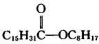 性质 近乎无色的透明液体。分子量369。酸度(以棕榈酸计)<0.20%。相对密度0.858(25℃)。粘度14mPa·s(23℃)、50mPa·s(38℃)。凝固点6~9℃。沸点218~235℃(667Pa)。闪点(开杯法)213℃。着火点235℃。折光率1.4466(23℃)。表面张力33mN/cm(23℃)。溶于大多数有机溶剂,不溶于水。