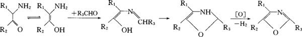 (7)噁唑类化合物。氨基酮与醛类作用可产生噁唑类化合物。