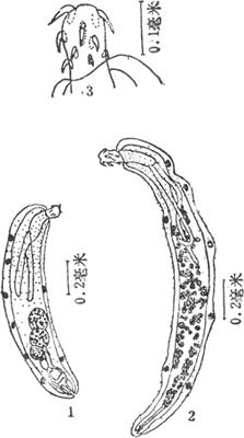 图23 沙市刺棘虫 1.雄虫 2.雌虫 3.吻部 |
