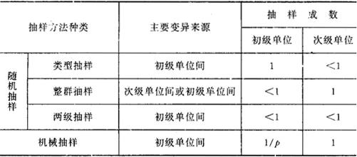 从表3-5可以看出,类型抽样是看作初级和次级两级抽样,其初级单位的抽样成数为1,即全部抽样;而次级单位的抽样成数小于1,即抽取部分单位。整群抽样则在总体的所有单位群中随机抽取部分单位的群,所以初级单位的成数小于1,但在抽选出的群内(次级单位)的全部单位都调查,故次级单位的抽样成数为1。两级抽样法的初级或次级单位,都是抽取部分单位,所以其抽样成数小于1。一个机械抽样则可看作从总体内分为p个群中的一个随机样本,但在抽出的群内单位是全部调查,抽样成数为1。 从精确度方面看,无论是类型抽样、整群抽样、两级抽样或随机的机械抽样等,若与纯随机抽样法相比较,其精确度表现有增加的趋势。其原因乃在于实施了以下两个原则:其一是整个抽样方案中使初级单位数目与次级单位的数目分配得很适当,最大限度地消除掉变异来源;其二是对抽样初级单位与次级单位的经费作了比较,从而决定多抽较为低廉的单位,这样可以在一定时间及经费限度内获得一个容量最大的样本。例如,机械抽样总体分群,按这种方法分群,使得变异来源绝大部分分布于群内次级单位间,因之通过在一个群或几个群的单位全部调查,则这一变异可以消除,从而提高了估计值的精确度。另一方面,类型抽样则适用于主要变异来源绝大部分分布于群间(指区层间),通过所有区层全部调查,消除了这部分变异,精确度就得到了提高。这样,机械抽样和类型抽样方法比之纯随机抽样是通过实施了其一原则而增加精确度的。整群抽样和两级抽样则通过其二原则而提高精确度。例如,整群抽样在扩大单位面积中多次抽次级单位,从而增加其样本容量,这样就可以补偿其余少数初级单位(指单位群)预期遗失的精确度。这两个原则在类型抽样和两级抽样中则均用以确定初级单位与次级单位数目的最优配置,即在变异最大的区层内抽取最多单位,同时在抽样费用最低廉的区层内抽取的单位也多些。 2.抽样成数或样本容量及抽样单位大小的合理分配问题 确定抽样成数和样本容量已在上一节叙述过。抽样成数的大小以及抽样容量的多少,关系到抽样精确度的高低和经费的多少问题。因此,一个优良的抽样方案,必须考虑到精确度和经费两个因素而解出一个最优配置办法。在类型抽样与两级抽样中,除要求确定最适的抽样数目外,还要根据初级单位与次级单位的变异度和抽样成本确定初级单位和次级单位数目的合理分配,即比值问题。在双重抽样中,又必须根据精确度与抽样成数解出最适的小样本单位(n)数目与较大样本单位(m)数目的合理分配。 抽样调查中,除了必须确定的样本容量外,同时还要确定抽样单位大小问题。在一定总体面积内,样本容量与单位大小成反比例的。例如,调查336m2小地老虎幼虫数,若抽样单位为1m2,则总体有336个单位;若2m2,则总体有168个单位。在抽样过程中,若抽出30个1m2单位,抽样比值为30/336=15/168;若抽出15个2m2单位,虽然其比值仍为15/168,但单位大了,则抽出单位数减少。所以必须找出两者的最适分配。据以往资料,抽样单位面积不能过大,过大则调查单位数目可以少些,但总调查面积增加了,从而加大了工作量。这说明了样本容量的确定应该和单位的大小同时考虑。 3.抽样单位的形式问题 抽样单位的形式是指用什么方式抽取这些单位以及这些单位的大小等等问题。这些问题在抽样方案中均应事先规定了抽样单位。抽样单位的形式一般随作物特点、种植规格以及有关病虫分布特点等而异。最常用的有如下3种:(1)面积法或笼罩法,取1m2面积作为抽样单位。如对秧田稻飞虱调查,以网拖的调查方式,每块秧田查100m2;以笼罩法的形式,每点1m2,每块田2m2。(2)行列法,以几行或行内一定长度作为抽样单位。例如,稻纹枯病的病情调查,每块田平行取样10个点,以每10丛禾的病丛率为一调查单位。(3)株穴法,连续抽取几株、几穴作为抽样单位。凡穴播和大株作物以采用此法为简便。水稻病虫以抽取若干丛,玉米病虫以抽取若干株等作为抽样单位。 4.抽样调查与系统调查的关系 我国基层专业测报站的病虫调查,以往分为大田普查和系统调查两种。近年来,将大田普查提高到植物保护专业统计县级抽样调查。系统调查主要是为发布发生期预报和研究病虫自然消长规律提供数据依据的。系统调查是定量的,其调查方法按全国统一规定执行,系统调查主要在重点(区域性)测报站的观测区内进行。系统观测对象由国家或各省、市指定;对于一般测报站则不强求进行系统观测,如有必要可由当地自行决定系统观测对象。抽样将由点到面,逐步要求所有基层(县)专业测报站都要执行,这是病虫情况调查的主体工作,也是为植物保护专业统计的主要统计指标提供数据依据。抽样调查一般分为防治前和防治后调查两种。于防治前进行主要是为分类指导防治以及植物保护统计服务的。通过抽样调查可以确定某病某虫发生和需要防治面积(含各类型田所占的比例)、发生程度(含总体)、重点防治的区域和类型田,以及估算自然损失量。抽样调查以定性为主,于防治后进行,可以确定防治面积、为害程度,计算挽回损失量、实际损失量和总体防治效果。同时,可以参考系统观测的数据和测报专业人员的经验进行合理的校正。 5.大田巡视目测法在抽样调查中的应用 大田巡视目测法是目前我国各省、市、自治区推广