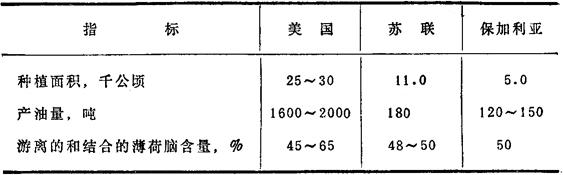 | 释义 | 椒样薄荷油 椒样薄荷油是从椒样薄荷(Mentha Piperita)的全株微干植物或干叶中制取的,薄荷是在其一半和完全开花或花谢期间收割的。微干植物的湿度应不超过55%。 水蒸气蒸馏的得油率按干叶计为1.5~2%。 椒样薄荷油的主要生产国是美国、苏联和保加利亚(表29.1)。 表29.11965~1970年间有关种植面积、产油量及油内薄荷脑含量等方面的平均数字