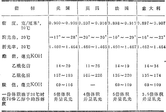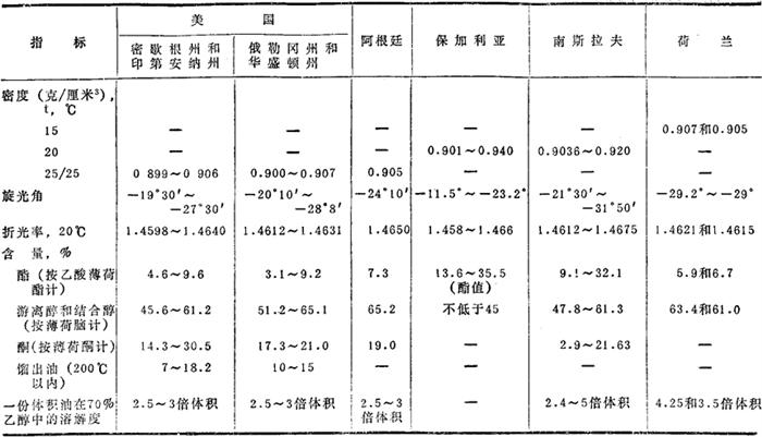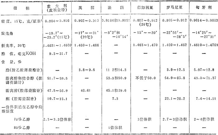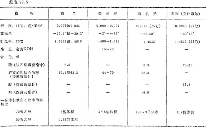 表29.9 根据法国标准(FDT75-210-65)各国椒样薄荷油的质量指标