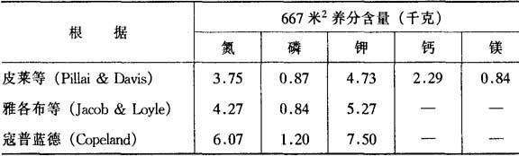 | 释义 | 椰子施肥技术 (一)椰子营养特性 椰子别名胥余。为单子叶多年生常绿乔木油料作物,为世界主要植物油源之一。我国椰子主要分布在海南岛、广东、台湾、广西等省、自治区。有高、矮椰子两种。 椰子为须根系,从茎基部的圆锥体向四周放射状生出数量众多,大小相近似的根,通称主要根(不定根)。主要根产生侧根,侧根又生分根和再分根,统称为营养根,主要吸收养分。由主要根和小根产生带白色的尖形小突起称为呼吸根,它能有效地促进根内气体交换。 椰树树干通常不生根,但在衰老或生长在局部浸水条件下,会在茎基正常生根部的上方生出气生根来。椰根没有根毛,由主要根和吸收根根冠后的白色吸收区代替根毛起吸收作用。根的数量和分布与树龄、土壤条件有关。强壮的50年龄椰树主要根可达400~7000条。早期生长的主要根,主要向下生长,随树龄增长,渐向侧面伸长,多数分布于20~80厘米土层中。由茎的地上部长出的气根,接触土壤后能伸长而起吸收作用。营养根大多分布在茎干周围2米范围内的20~50厘米土层中。雨季及土壤肥水适宜时,营养根产生多而伸长快。主要根寿命30年以上,营养根寿命较短,细弱小根每年干旱季节都会死亡。地下干旱,根分布深,地下湿润根分布较浅。在海滨地带,根系往往长成长条或集中在一小块土中,同时地上茎长出气根。这表明土中缺少空气或原有根系衰弱或死亡。 椰子能在多种土壤上生长,以海滨冲积土和河岸冲土为最好,其次为砂壤土。砾土、黏土最差。地下水位在1~2.5米较宜,土壤pH5.2~8.3之间均能生长,以中性土较佳,偏酸则产量低。在温度适宜,水分充足时,海拔500米以下均能生长,而以低海拔为好。 (二)椰子施肥技术 1.椰园管理 为了提高土地利用率和经济效益,幼龄期可间种花生、豆类及绿肥作物,成株后也可把具不同习性的作物间作在一起,以充分利用光能和地力,形成良好生态体系。并及时中耕,消灭杂草,改良土壤。可结合施肥,一年中耕2~3次。对于长出气根的椰树,进行培土,可加固树体,增大吸收面积。 2.施肥 椰子需要全肥,以钾最多,氮磷次之(表6-31)。 表6-31 椰子树每年从土中摄取的养分 (热带作物栽培学,椰子,1980)
