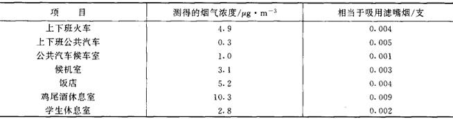 生活习惯和环境因素对不吸烟者的健康危害高于被动吸烟,以致癌性非常强的苯并(a)芘为例,环境、饮用水、土壤及食物中几乎到处都有痕量的苯并(a)芘。工业燃煤,家庭燃气、壁炉都可产生苯并(a)芘。同以上因素相比,吸烟对环境中苯并(a)芘的影响是很小的(见表2-4-3)。 表2-4-3 美国波士顿家庭住房内外苯并(a)芘的含量