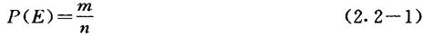 | 释义 | 概率 若作某实验时,有且只有n个可能发生的情况,并且每个情况都是等可能的,其中恰有m个情况具有性质E,则E出现概率