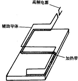 图7-21 利用邻近效应限制高频电流加热通道示意图 高频焊分为高频电阻焊和高频感应焊两类。 高频电阻焊原理如图7-22所示。电流从电极直接输入工件,由于趋表效应,电流集中在待焊边上快速加热,同时施加压力形成焊接接头。