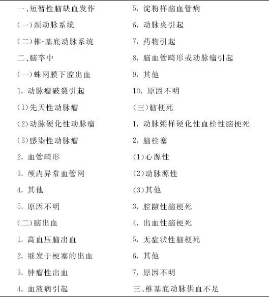 2.1995年,全国第四届脑血管病学术会议通过的脑血管疾病分类(见表3-2) 表3-2 1995年全国第四届脑血管病学术会议通过的脑血管疾病分类