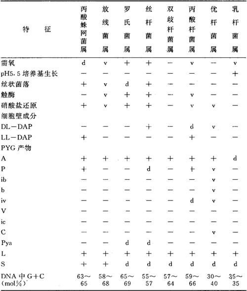注:d表示11%~89%菌种为+;V为不同菌种间反应有差异。 |