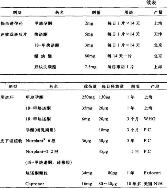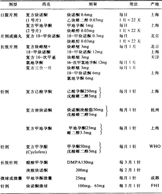 三、剂型和剂量 表3-1-1 激素避孕药剂型剂量表