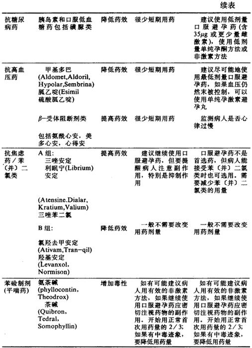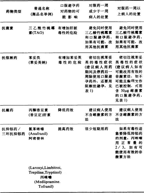 摘自《展望》,1990,4 表3-1-4 口服避孕药对药物的影响