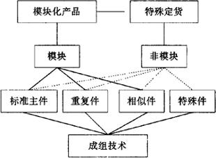 | 释义 | 模块化技术的概念 模块化技术是实现标准化与多样化的有机结合和多品种、小批量与效率的有效统一的一种最有生命力的标准化方法。在当前它是实现复杂产品(如机电一体化产品)及工程系统多样化的主要(或唯一)的手段。 1.模块与模块系统 模块化技术也是在组合化基础上发展起来的。不同点是,模块化的侧重点在部件级的标准化,而达到产品的多样化。通过对某一类产品或系统的分析研究,把其中含有相同或相似的单元分离出来,运用标准化原理和科学方法,进行统一、归并、简化,以通用单元的形式独立存在,这就是由分解得到的模块。各模块具有相对独立完整的功能,可按专业分工单独预制、调试、储备。系统的设计者,只需了解这些模块的功能原理及输入、输出、接口,即可选用合适的模块组合成产品或系统。可见,组合化的高级阶段就是模块化。 模块化技术虽然已经在一些工业化国家比较广泛采用了,但模块还没有一个确切的定义。一般地说,所谓模块是指模块系统的构成单元。从模块化设计的角度,模块是一组具有同一功能和结构要素(指连接部件的形状、尺寸和连接之间的配合或啮合参数等)而有不同用途(或性能)和不同结构且能互换的功能单元,或能增加产品功能的单元。 模块化技术的核心是各种模块,它们都具有一种或多种功能。并可将它们概括为基本模块和辅助模块,而且是通用的,基本模块与辅助模块的差别,前者能直接产生模块系统的功能,后者仅起连接作用。考虑到特殊要求,还可以有专用模块。使用这些模块可以在一定范围内,重复地用来制造任意多特性或功能不同的模块系统。 模块系统的总体功能,根据外部需求是可以变化的。这个可变范围的边界,有的受到设计方案的严格限制而无扩充余地,有的也可以不受严格限制而能够向外延伸。前者称为闭式模块系统,后者称为开式模块系统。当然开式系统更富有生命活力。例如,对于产品的特殊定货,如能充分使用已有的模块,只须另补一些专用部件,或对已有模块进行局部修改,就能满足定货要求,才是好的模块结构方案。 一般地说,开式模块系统都是考虑特殊定货的混合系统。这种模块结构,可以把形状、参数、工作原理和功能相似的模块种数减至最少,而系统功能仍符合多样化要求。在多品种生产中,把模块化技术同成组技术结合起来加以应用,将对标准化工作的深入发展产生十分重要的影响。 模块化技术不仅用于硬件,也可用于软件和组织管理方面非物对象的设计,如产品和工艺的指导资料与标准、计算机用的程序等等。事实上,硬件模块系统的信息载体,就可成为软件的模块系统,两种模块系统具有相似的结构层次,并且是互相联系的。 2.模块化技术与标准化 传统的通用化设计指导原则是在系列内或跨系列的产品之间采用同一结构的零部件,以减少企业生产的零部件种数,从而使企业的生产和管理过程简化,获得一定的效益。但没有把简化管理、降低成本同发展品种、提高质量协调起来,以达到供需双方总体优化的目的。因为单一结构的部件用于不同产品时,容易产生性能不足,或者超出需要而使结构不必要的复杂,终因不能适应需求而陷于被动应付,导致生产技术和管理上无序,阻碍了新技术、新工艺的应用。 模块化技术则是针对用户的不同要求,只在结构上更换产品中一个或几个模块,因此各品种的其他部件之间必然有很大的通用化程度,更何况当品种的系列较完整时,同一模块也可出现在不同的变型品种之中,这时模块就不再是专用的了,它又具有通用化的特性。因此可以认为模块化产品必然具有很大的通用化。 组合化结构从一般的标准功能单元发展到模块化,可以说是组合化方法的一个突破。因为这样就把着点从功能单元的标准化扩展到模块以及与之有关的一系列成果的标准化、典型化和重复利用上。这对适应社会需求的多样化和促进企业内部各项工作的效率、质量与效益都产生更为重要的作用。由此可以看到,模块化的主导思想与标准化是一致的(参见图7.4.1-1),加上成组技术的应用,传统的产品标准化将会在新的技术基础上得到新的发展。