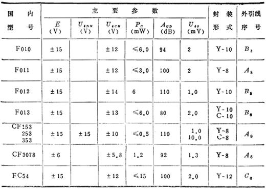 表15-24 高输入阻抗型集成运算放大器型号和参数