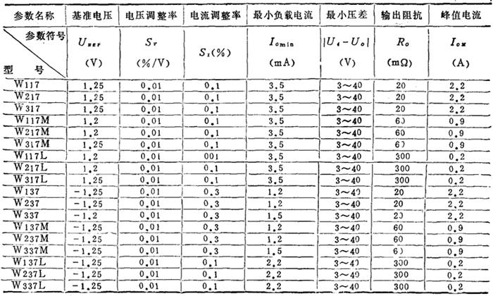 表15-32W117/217/317、W137/237/337各系列稳压器的参数