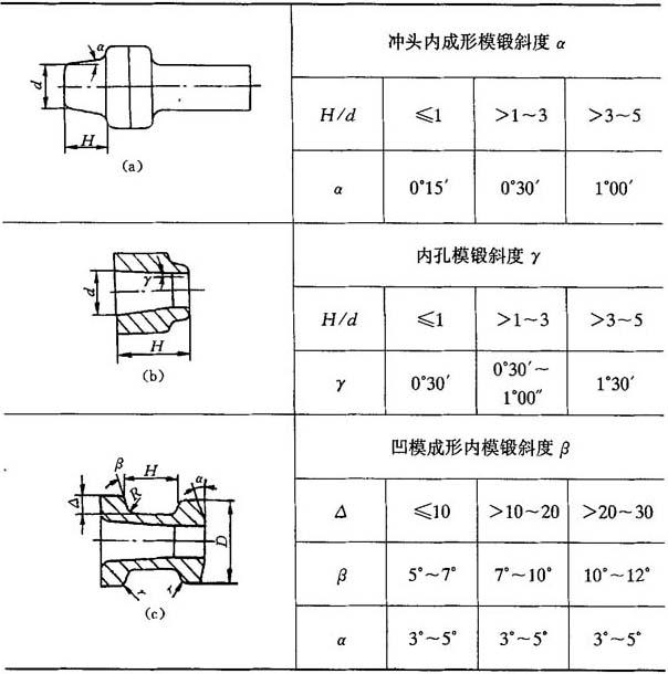 表7-20 平锻件各类模锻斜度数值表(JB3835—85)