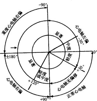 3.心电轴:心电轴是指心室在除极过程中,QRS波群在额面上各瞬间向量之和。 (1)心电轴偏移的分类:心电轴偏移的分类如图7-3所示。