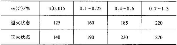表15-17 退火和正火状态的布氏硬度(HB)与含碳量的关系
