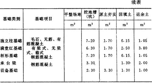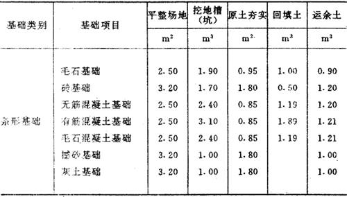 每m3基础土方工程含量参考表