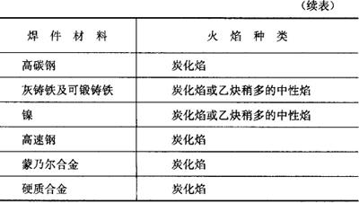 各种金属材料气焊时所使用的火焰参阅表3.7-11。