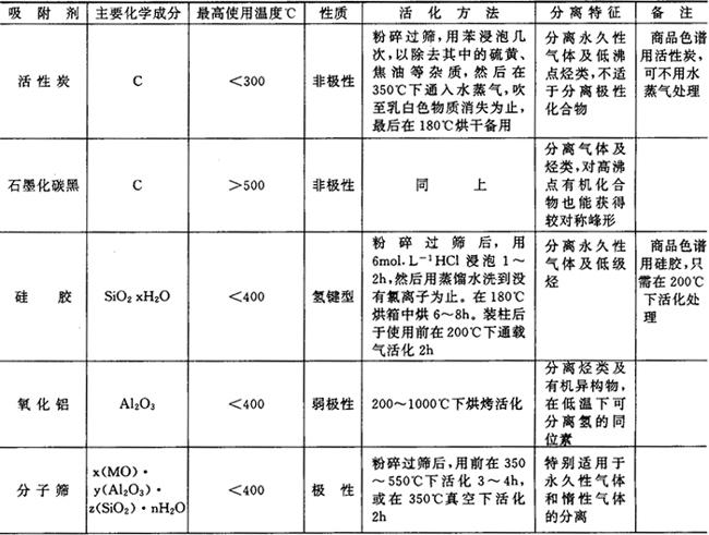 *使用几率大 表12.11-3 气-固色谱法常用的几种吸附剂及其性能