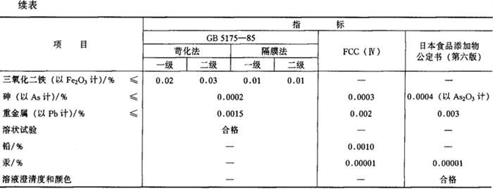 鉴别方法 (1)本品溶液(1+50)呈强碱性。 (2)用洁净的铂金丝经盐酸湿润后,沾取本品在无色火焰中燃烧,火焰呈鲜黄色。 毒理学依据 1.LD50 小鼠腹腔注射40mg/kg(bw)。 2.GRAS FDA-21 CFR 173.310,184.1763。 3.ADI 无需规定(FAO/WHO,1994)。 使用 酸度调节剂、碱剂、加工助剂。 1.使用注意事项 (1)本品对皮肤、眼睛和粘膜有腐蚀性刺激,使用时应严格注意安全。 (2)用作柑橘、桃子脱皮(1%~2%溶液)等加工助剂时,必须用水洗等将其从成品中除去。 2.使用范围及使用量 (1)我国《食品添加剂使用卫生标准》(GB2760-1996)规定:可作加工助剂,按生产需要适量使用。 (2)实际使用参考: ①用于水果罐头加工的水果去皮(碱液去皮),其溶液浓度依不同水果及所采用温度、时间的不同而异,如生产糖水桃罐头时,去皮的碱液浓度为13%~16%,温度80~85℃,时间50~80s。具体操作是将去核的桃片反扣于碱液去皮机的不锈钢链条上,经碱液喷淋,再入擦皮机去净残皮,然后以盐酸中和,流水冲洗。制造糖水海棠罐头时,碱液浓度为30%~40%,温度90~95℃,时间40~60s,以去净皮为准,随后即以清水漂洗至果面无碱液后,浸入1.5%食盐水中护色。 ②生产全去囊衣糖水橘子罐头时,可将去橘囊衣的橘瓣先经盐酸处理后,再置于浓度为0.07%~0.09%的氢氧化钠溶液中,于40~44℃处理5min,以大部分囊衣脱落,橘肉不起毛、不松散、软烂为准。然后以盐酸中和,流水漂洗以除尽碱液及囊面果胶物质。 ③本品在食品加工时常用于容器具的洗涤、消毒,可配成1%~2%的氢氧化钠水溶液使用。 |