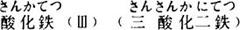 特性:红色或黑色无定形粉末。比重5.12~5.24。熔点1560°,同时分解。不溶于水,溶于盐酸。另有一种含水物(Fe2O3·XH2O),红棕色无定形粉末。比重3.4~3.9。热至500°失水。不溶于水、乙醇、乙醚,能溶于酸类。