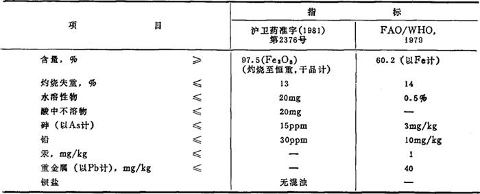 质量规格〔沪卫药准字(1981)第2376号;FAO/WHO,1979〕