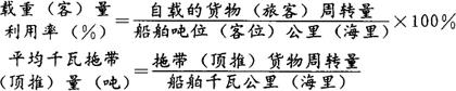水运企业注意保持船舶的良好技术状态,缩短维修、停泊及其他时间,就能提高船舶的利用率。 (3)船舶负载利用指标,是反映船舶在营运里程中吨位、客位的利用程度和拖带(推顶)能力的指标。主要有:船舶载重量利用率、船舶平均千瓦拖带(顶推)量等。其计算公式如下: