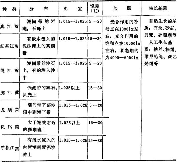 4.江蓠的生态习性,见表8-2。 表8-2 几种江蓠的生态习性