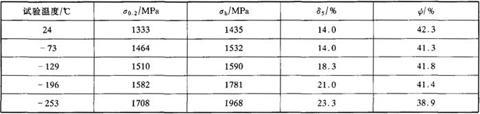 表2-25 A-286钢的低温拉伸性(冷变形53%后时效)